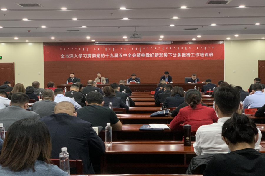 2020年11月17日,鄂尔多斯市深入学习贯彻党的十九届五中全会精神,做好新形势下公务接待工作培训班在鄂尔多斯市警校开班。市委副秘书长、接待办主任谢东平,市接待办副主任解利云,市接待办副主任敖特更格日勒,市文旅集团副总经理尚勇出席开班仪式,谢东平同志作开班讲话,来自全市接待系统的300余名干部职工参加开班仪式。