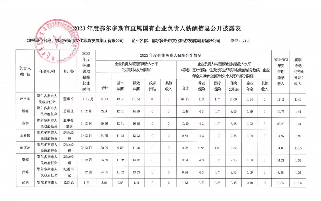 2023年鄂尔多斯市文化旅游发展集团有限公司工资总额信息披露