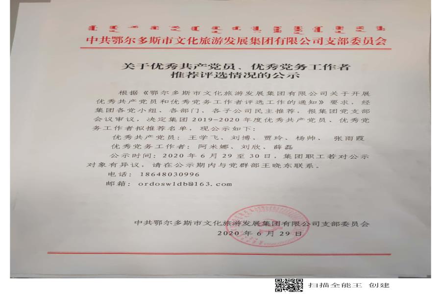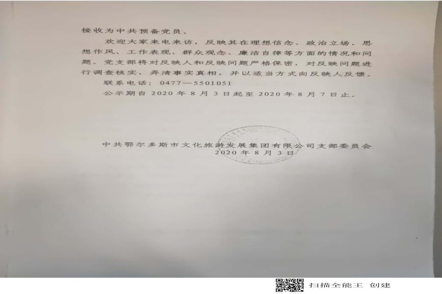 鄂尔多斯市文化旅游发展集团有限公司2020年政务公开